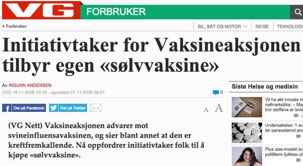 Markedføringsartikkelen hans er for øvrig bare en omskrevet og omklippet versjon av en like sprø artikkel om sølvvann som han publiserte i 2009 på konspirasjonsnettstedet Nyhetsspeilet. Ja, du vet, der de tror at Jonas Gahr Støre er en "biorobot" og at AP stod bak 22/7.