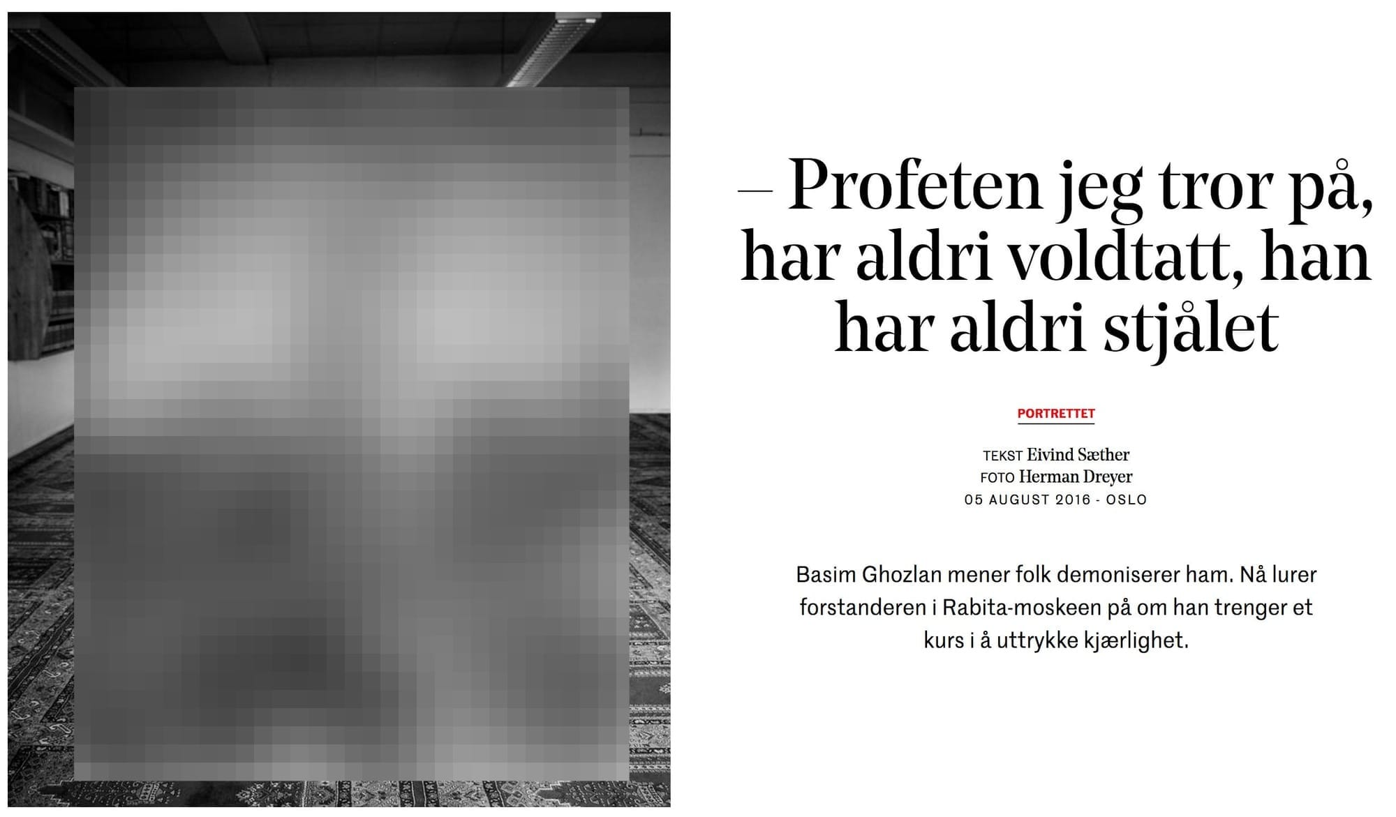 Tilsvarende fikk forstander ved det Det islamske forbundet, Basim Ghozlan, mye kritikk da han i et portrettintervju i Dagens Næringsliv 5. august 2016 kom med følgende utfordring til det norske folk: